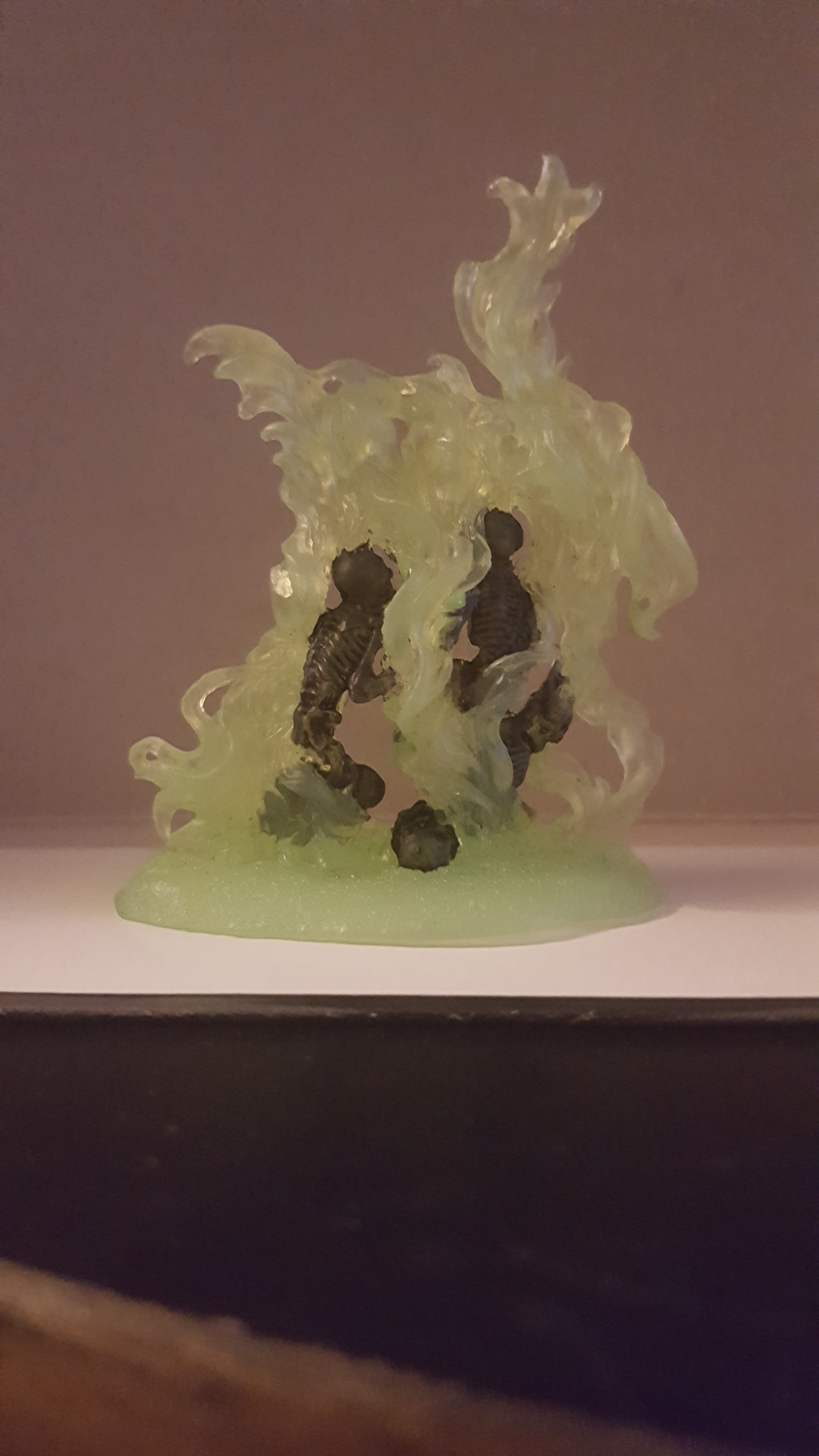 There’s also a lot to be said for reworks and color customization. These were small comissions from a friend who wanted his spectral monsters to stand out more. So I gave the banshee more color while also keeping the spectral nature of the spirit. I gave her the typical white dress of dead female ghosts that appears in lore as well as corpse blue skin. For the wall of spectral skeletons I added a simple shadow wash in a few coats to bring out the tormented souls in the wall. It gives them a more sorrowful look that isn’t overshadowed by all the green.
