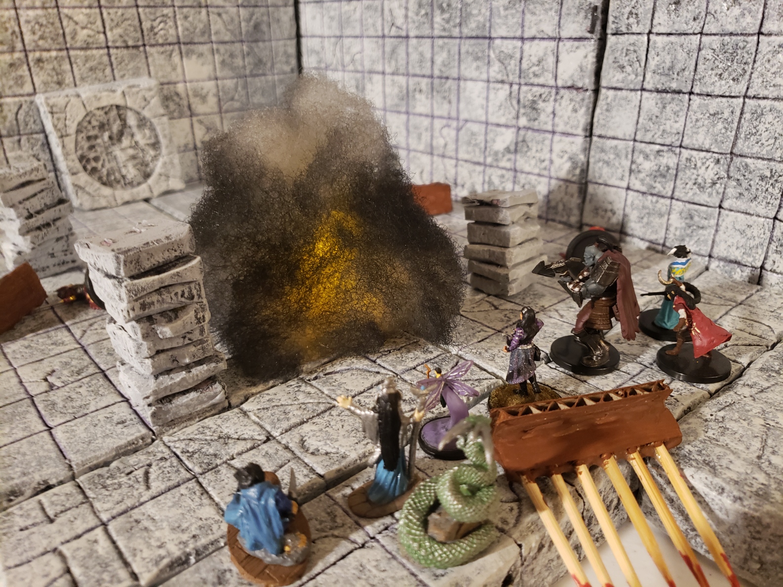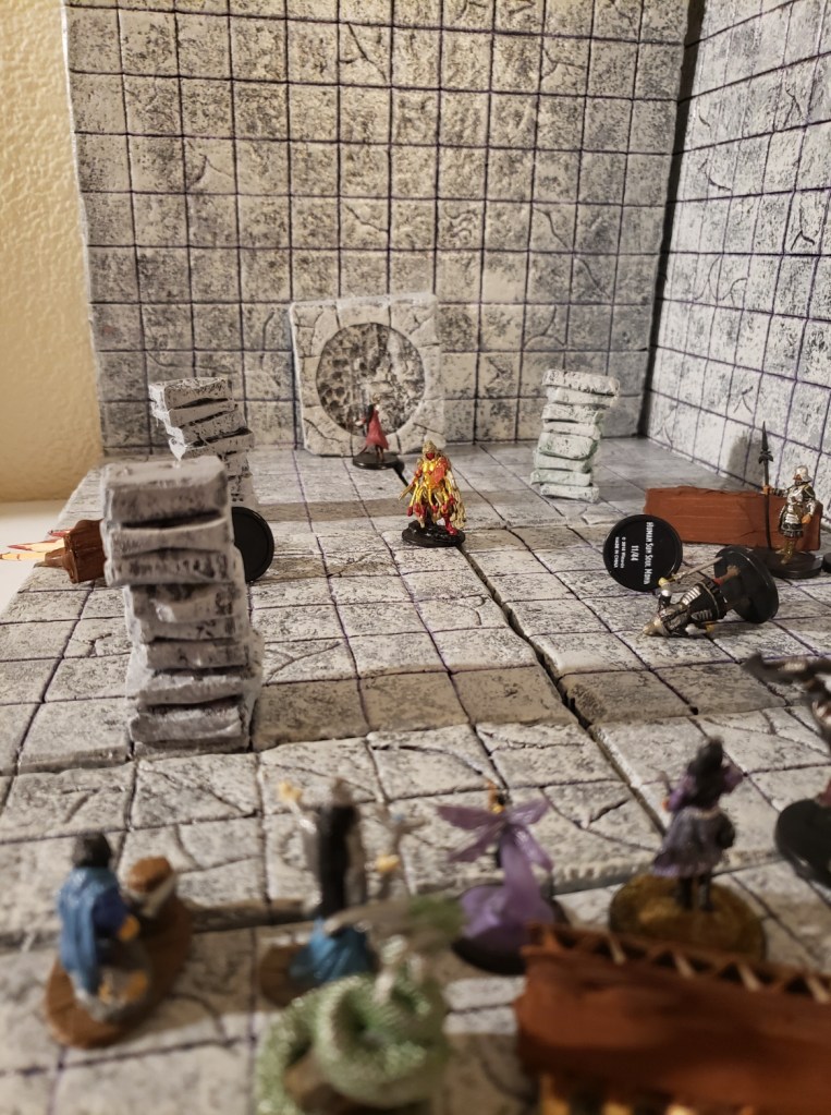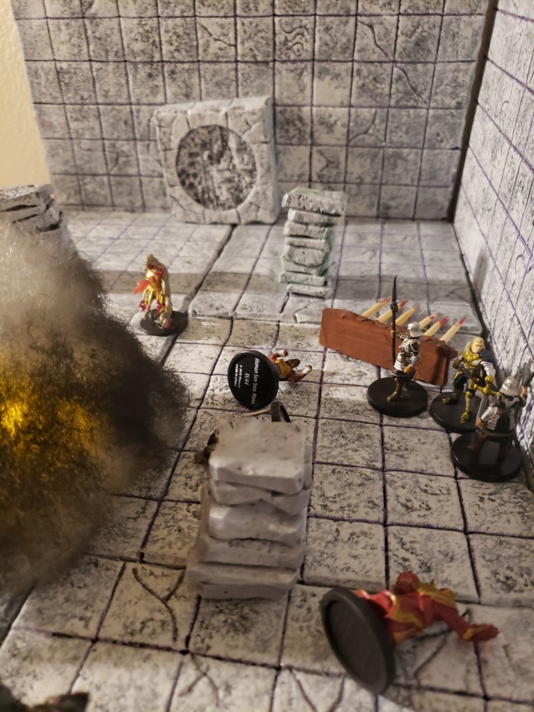 No sooner had she disappeared than Regent Phillip and his band of soldiers followed her through it. They had worked their way around the chamber slowly, to reach the Queen. They disappeared too and the gate closed. Malthazar began his offensive immediately. He summoned more ash creatures and the party soon realized that touching them resulted in an ashy rash that spread. They used almost everything they had to fight. Seeing that he would lose if he stayed longer, Malthazar teleported out of the area. His final words rang out as the party was left to deal with the aftermath of disaster. “She will return!” King’s Crest would never be the same again.
