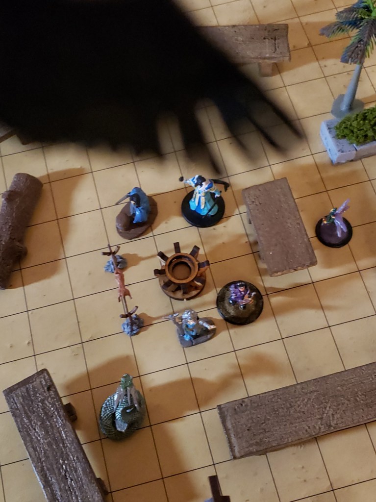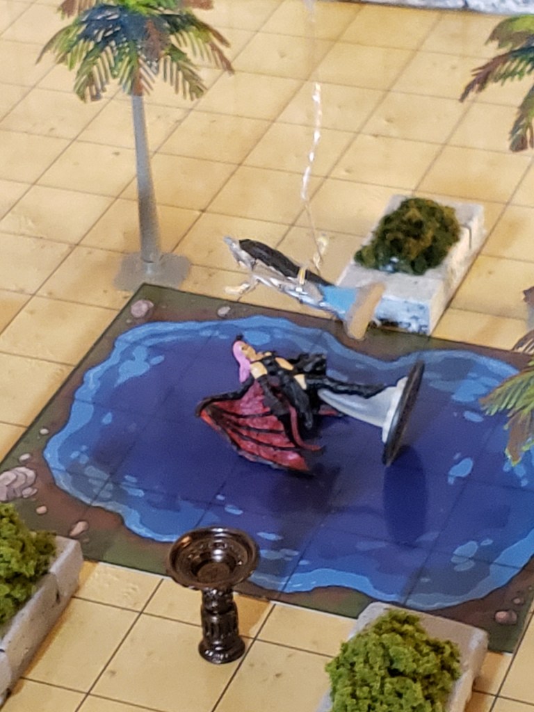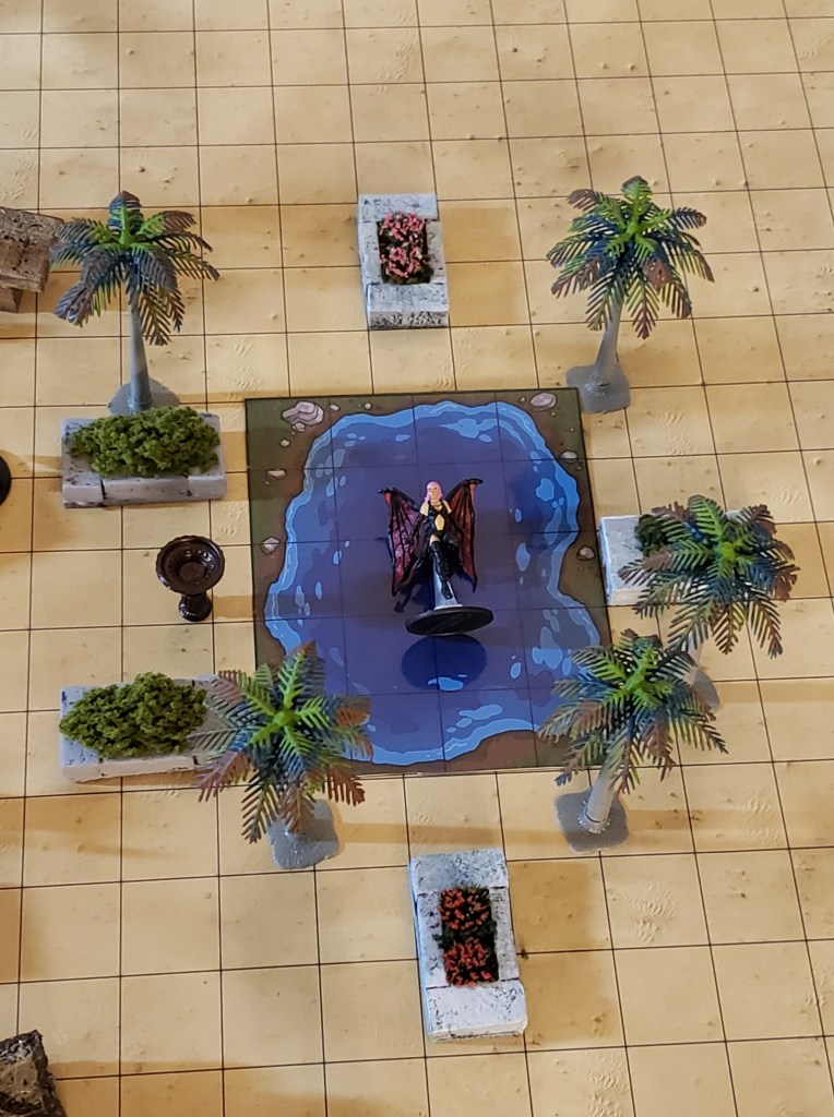 Aleera came back to the party and relayed her information. She also let them know that she hadn’t sensed anything but that she hadn’t actually flown over the Oasis just around. They were watching the party wind up and people get more drunk when Aleera doubled over. She was getting a sickening feeling from the center of the lake. That was where her bounty was.