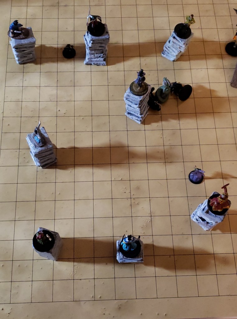 A masculine scream of rage rang out over the dessert. The leader of the Errant, furious at the death of his lover, moved in for an attack. He screamed at the other members to kill the intruders one and all. He cast some heavy magic and the ground trembled beneath the party’s feet once more. This time they were elevated above the sand on pillars of sandstone of different heights. They fought The Errant with everything they had. They had all held back out of courtesy for the battle of the ladies but now it was over. They killed every single member. Only the leader stood at the end. He saw that his comrades were all dead and managed to teleport away leaving the carnage behind.