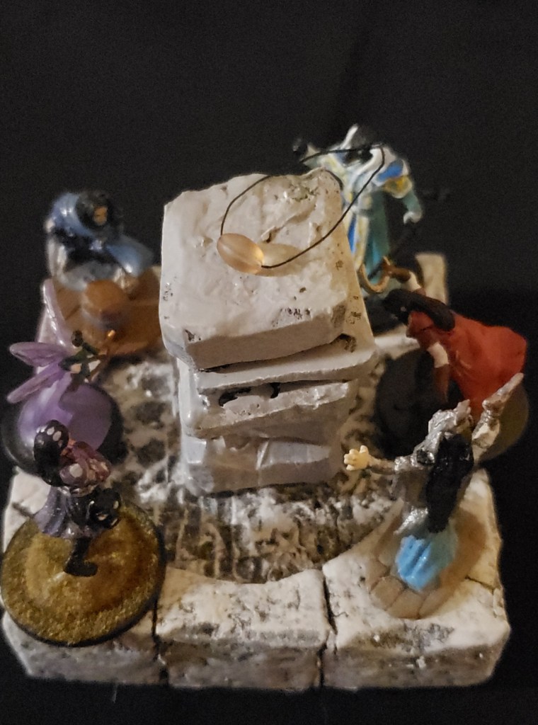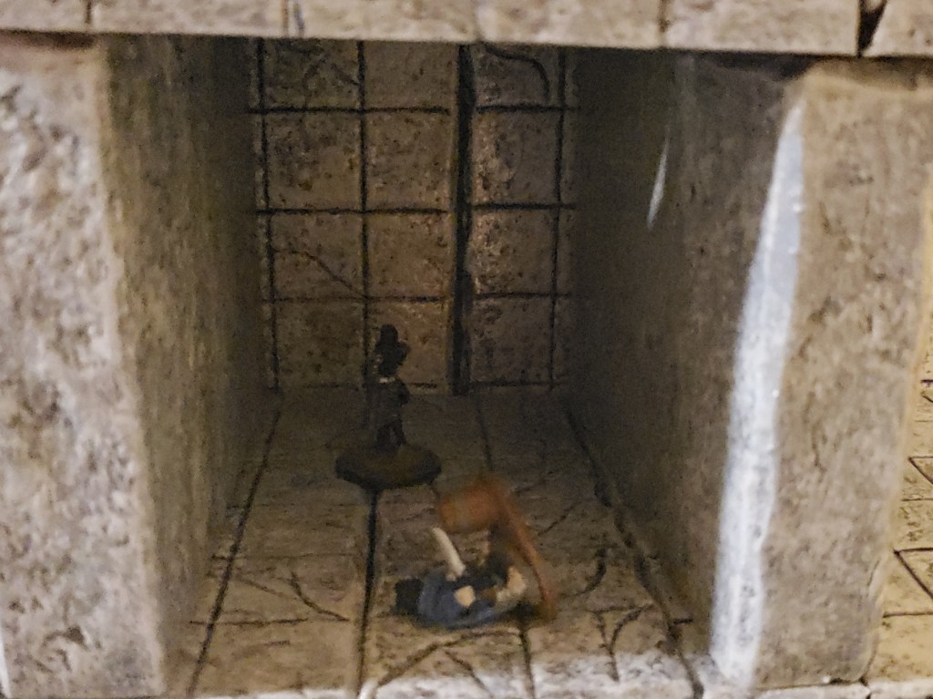 Kaladrax saw this happen from the beginning of the trial and a thought crossed his mind. He took the jewel from his robes and walked slowly into the first trial tunnel. The wind didn’t even touch him, the lightning never struck in the next room and when he reached the pit, he walked across it with no seeming path beneath his feet. He reached the altar in no time and when the rest of the party caught up at the final location, they exploded.