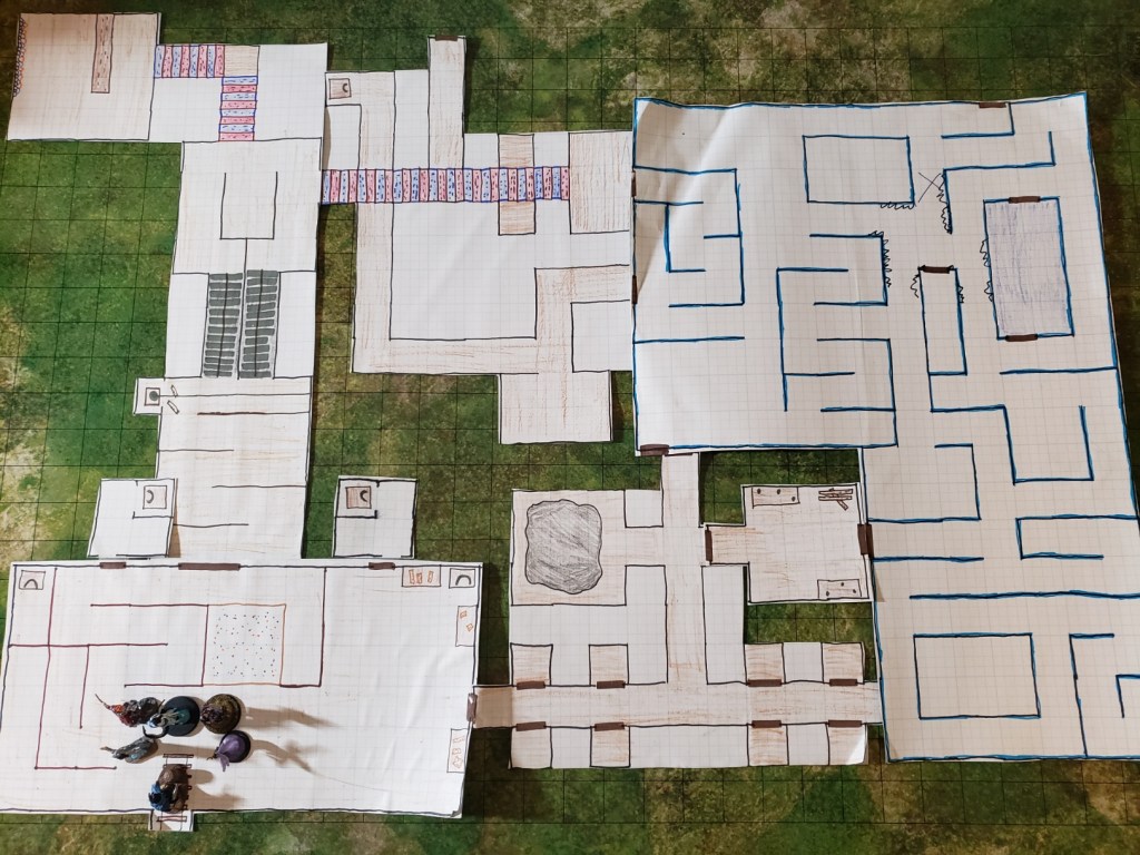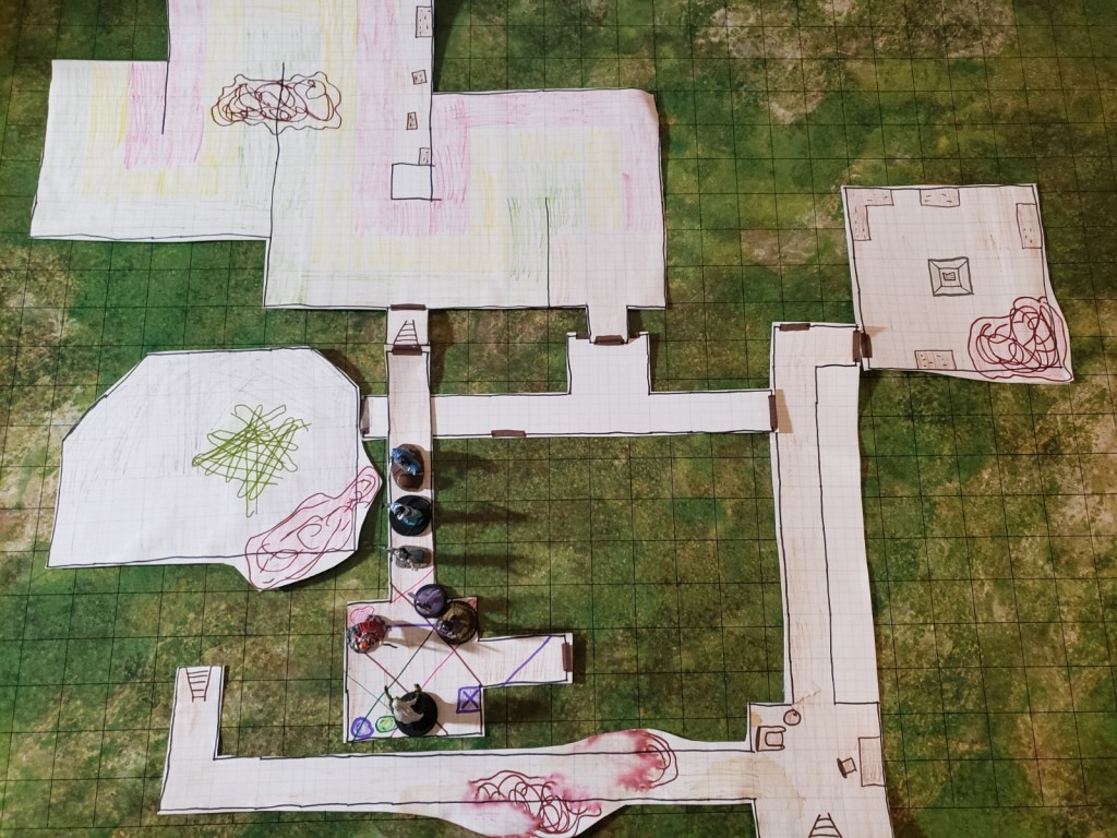 The Hand of Destiny made their way around a room that was completely black, and came across a few fun things. First there was a room full of small holes in the bottoms of the walls but otherwise empty. The party could hear hissing but couldn’t see anything. They went into the next room and found a balloon board with darts waiting for players. Hepolita and Kariss tried some out. They found out, through trial and error, that every time they hit a green balloon a hiss sounded out from the dark. They thought there might be a snake creature in the dark room so they kept hitting the balloons until all the green ones were gone.