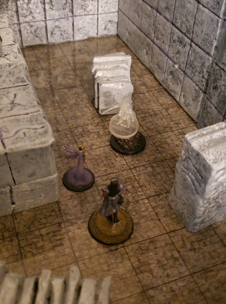 Kariss explained that she had cast Gentle Repose on his body to delay the decay process and get him to a healer that might be able to bring him back. Aleera perked up at this and asked what they could do. They were going to have trouble carrying his body back to King’s Crest. He may have been, was, a wizard but he was also a bulky dragonborn. Aleera thought desperately of a way to transport him. Then an idea bloomed. It was a bad idea.