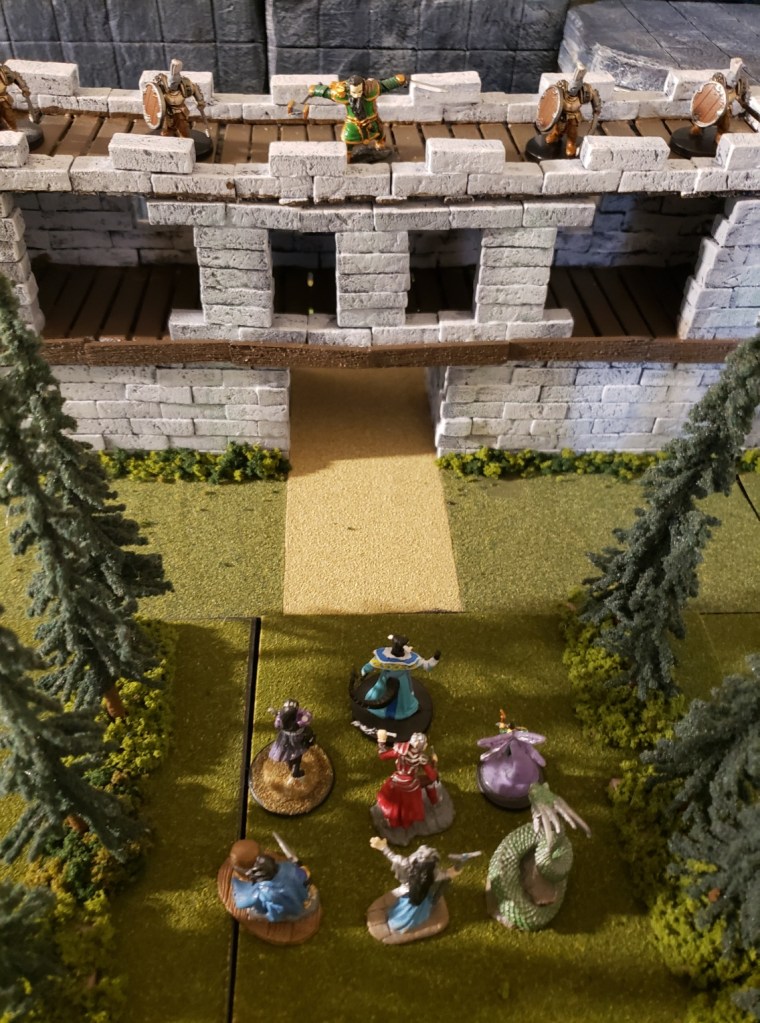 The next morning they traversed the rest of the road to Drakenforge and came up to the tall walls defending the land. They could see short glinting bodies patrolling the walls and shouted up to ask to come in. They waited a few moments and were greeted by a shinier dwarf than the rest. He introduced himself as Stobal Wallcracker, General of the Wall Defense. The party introduced themselves as traveling merchants, using Kaladrax’s family name as guarantee of their mercantile aspirations.