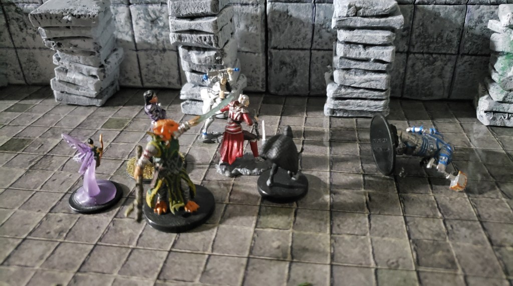 Before falling asleep, the party set up a watch. Aleera’s sprite and Kariss’ snake, Kess, were standing guard with one person rotating through the “night”. They dreamt, that night, of knives stabbing backs and brother turning on brother. Kaladrax in particular had dreams of shadows and snarling fangs of a large creature.