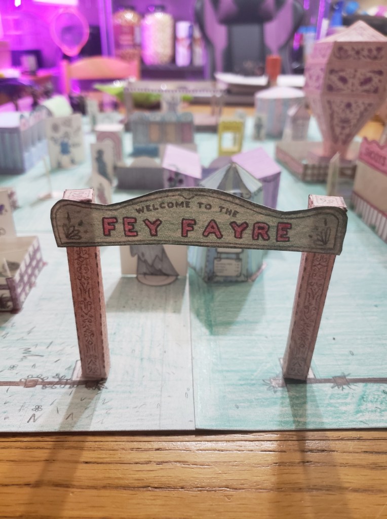 The game itself was amazing but I will say it was so stressful leading up the the day. I had to put together a lot of papercrafts to bring the fair into a 3D scene that the players could walk through. I didn’t get much sleep the night before so that was fun. The other weird thing that changed from being a player to being a DM was the disconnect.