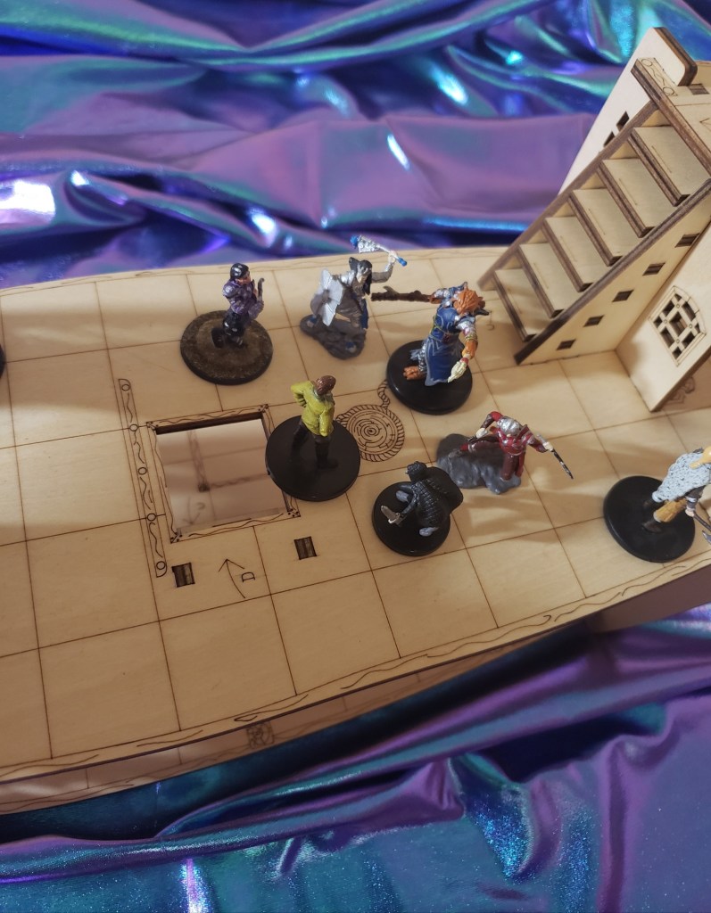 The party didn’t trust the creature too much so they formulated a plan. It took some time and a little damage to the creature but Kaladrax teleported him to the mainland, far away from their ship. This would allow the creature to escape the persecution he was running from and keep their interests safe as well as the crew and ship. Having done this the party continued their trip, letting the crew know and getting them back to work on getting to the mainland.