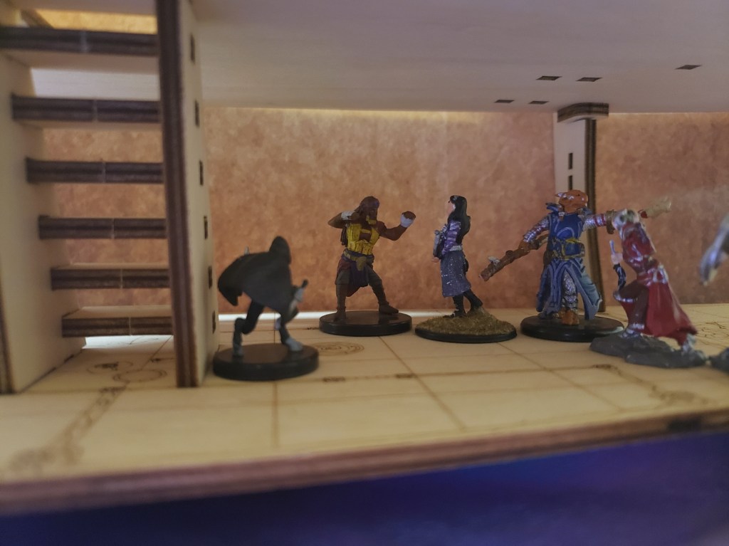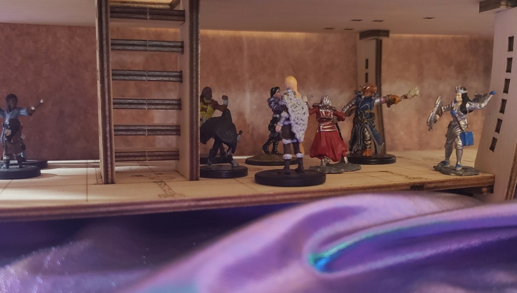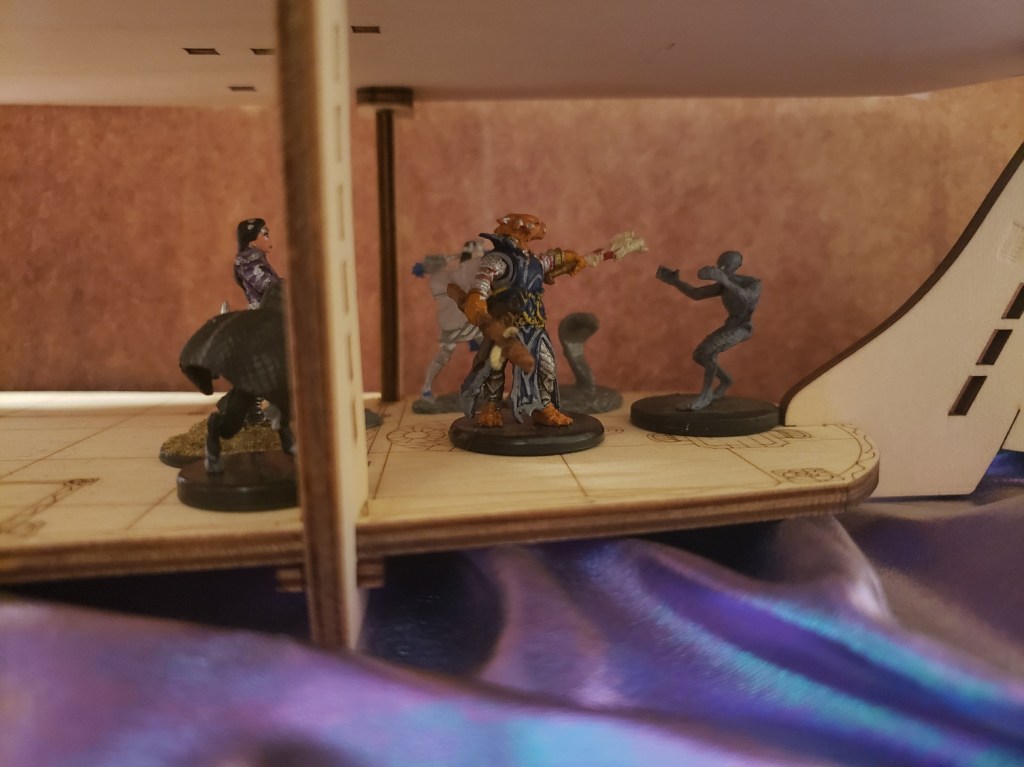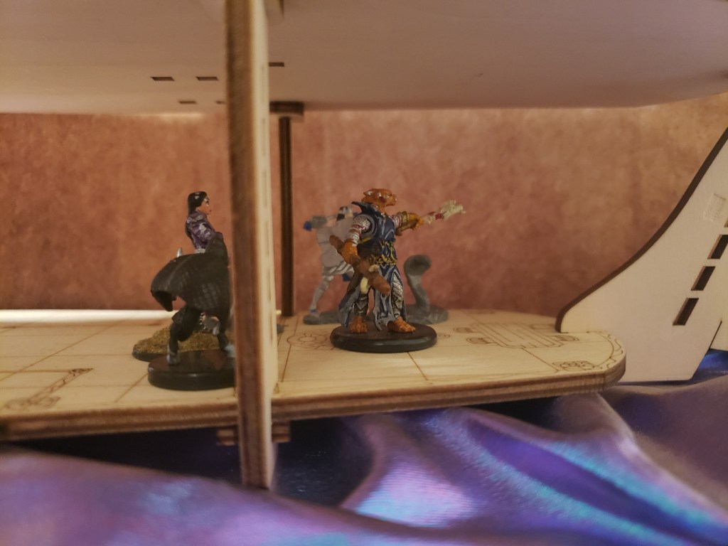 She put the cards away with shaking hands and went to join her friends up top. The party was excited to be taking on this new adventure and was exploring the ship. They ended up finding a hidden cache of goods that were being smuggled by the enterprising Captain Sheila Coppertree. It was cleverly disguised with the use of illusion magic and well placed wooden boards. In an effort to raise the spirits of the crew and thank them for their services, Aleera put on an elaborate show with illusionary creatures.