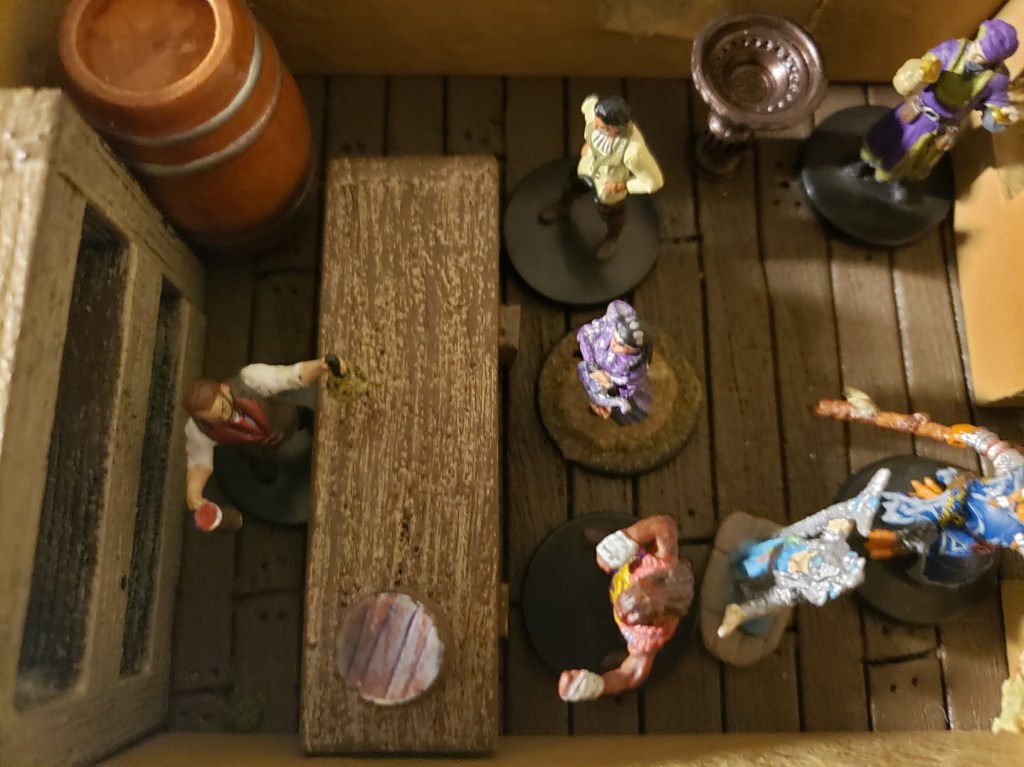 The party came together in the afternoon back at the Yawning Portal. With a mission at hand, they headed out to the Seaward to investigate the mystery of the missing Floon. On their way towards the Skewered Dragon, where Floon was seen last, they passed the sight of a terrible crime scene. There were dead bodies on the street. Blood was splattered on the smooth city stone.