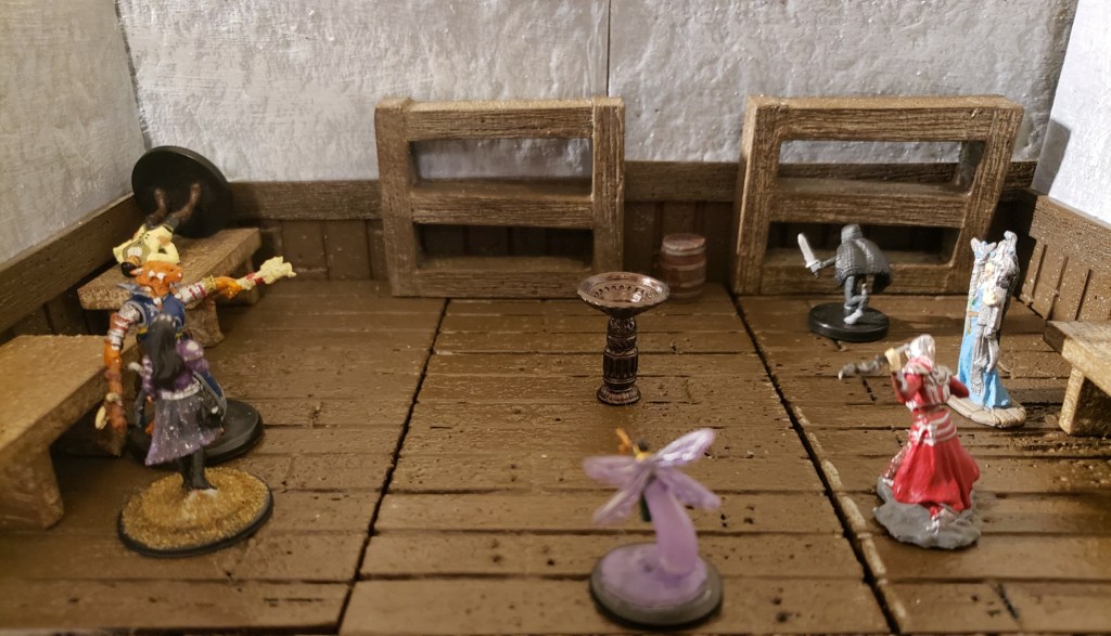 The party tied up the Kenku and left it under the watchful eye of Hepolita and Kariss. Upstairs the others found Renard Nevermember, the second man that had been with Floon that night. He told them that he had come to consciousness before Floon and seen the mess they were in. He knew that people were searching for him and he didn’t want to die. So he had searched for a good hiding place and had found the chest the party had found him in. He was pretty sure he had heard someone come into the room and take Floon out.