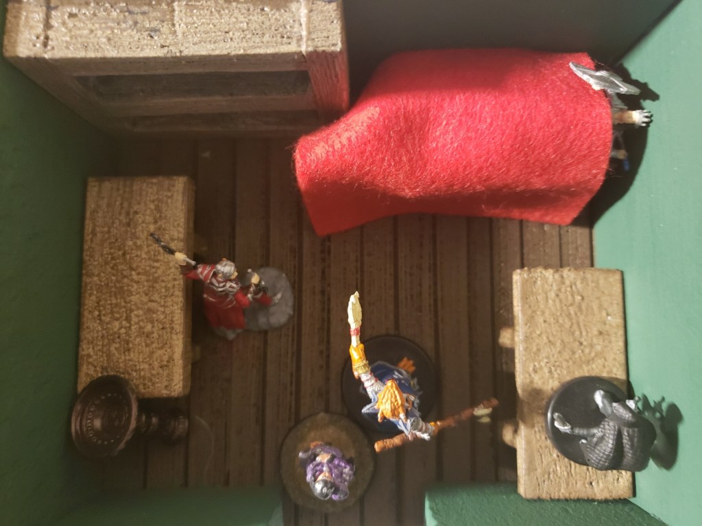 Aleera pulled back and filled everyone else in, sharing the images with her telepathy. The party was spooked. Someone had come in and not disturbed a single thing, yet they had been able to do something to a powerful member of their team and leave with hardly a clue as to what had happened. This was not good. Aleera immediately cast her True Sight spell. She was worried that there might be more than met the eye hanging around the team. Her vision twinned as she saw both the prime material world and the ethereal plane transposed over each other.