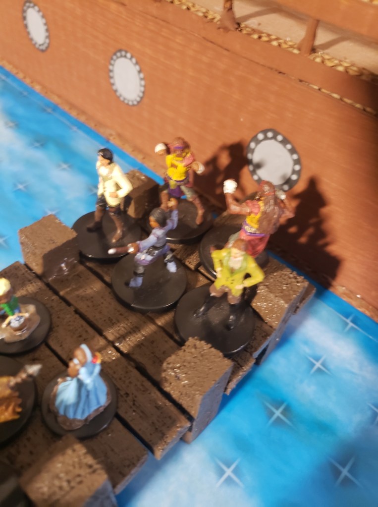 The group accepted their assignment and left to deal with some of their other problems. They still had to find out why Karris had woken up in blood soaked sheets. They were walking through the Seaward when a young boy standing on the corner waved a few sheets of paper in their faces. He yelled out, “Murder on the Docks: Bodies piled high after rampant animal attack!” The group stopped for a moment, exchanged a look and adjusted their course to head towards the docks. It was just too convenient that on the day a group member, a were-hippo, woke up drenched in blood that bodies would show up.