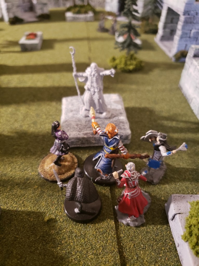They came up to the purported location and found themselves face to face with an intimidating statue of the founder of the city, the dragon Ahghairon in human form. It was holding a staff in its hand but something was clearly missing. A depression at the top of the staff looked like it could hold a decent sized gem or item. They were searching the statue for more clues on how to open the vault when there was a commotion to the side of them. A blur raced past and headed into the mausoleum portion of the City of the Dead. The party gave chase as well and, unlike the other pursuers, they were able to track the fleeing blur to a small mausoleum at the edge of the City of the Dead.