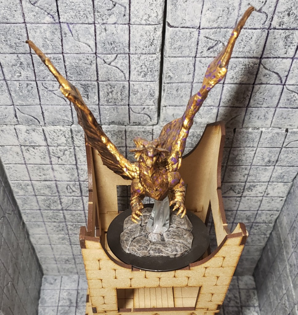 Strangely enough, they found themselves in the same circular chamber they had first entered. Other forays through the doors made them face black puddings, puzzles involving delicate levers to move panels, to even fighting a terrible Demilich. When they eventually reached the true door they stepped through with relief thinking their trials over with. They entered another cavern, this one bigger than any of the others. It was littered with gold, platinum, jewels and encrusted objects. The wealth surrounded a large, four story tower. They stepped towards the tower in delight at their new found wealth only to discover an ancient bronze dragon. Something was wrong with it.