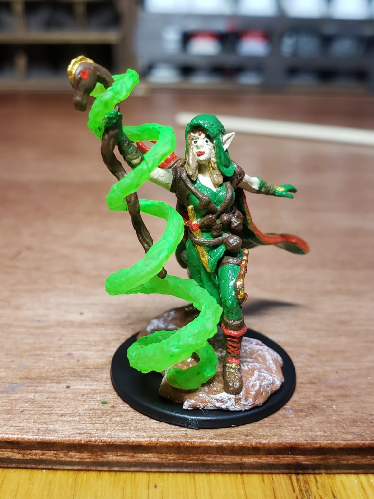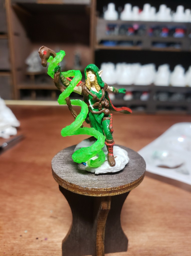 I then painted the skin. I gave her the pale skin of the elves and planned to give her armor, painted with colors of the forest. Athena took a few levels in Fighter so she could pursue her dreams but the majority of her training was as a Druid, and she knows how to use her skills well.