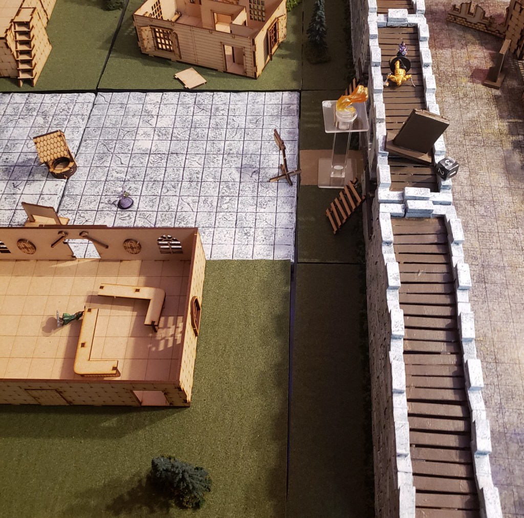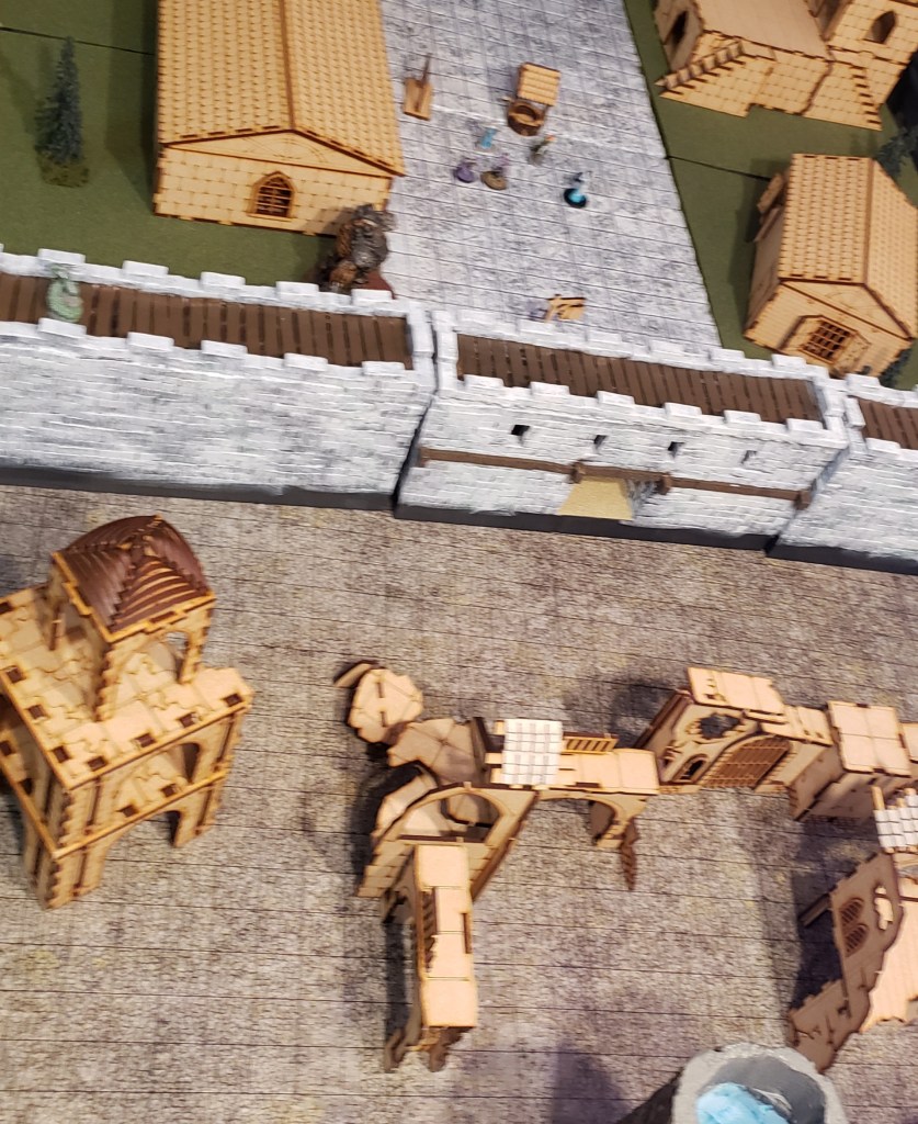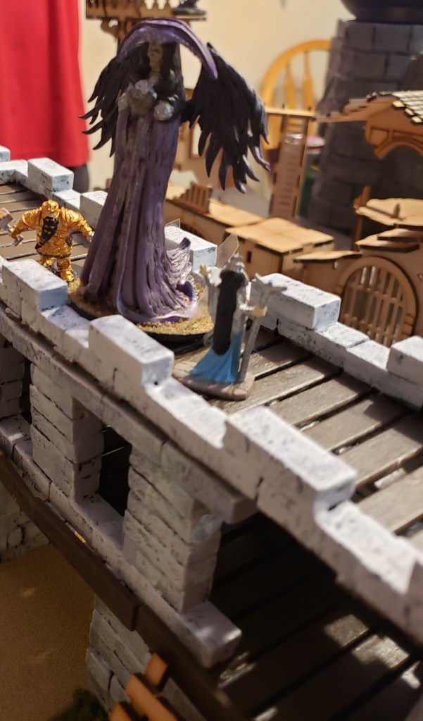 At the top of the wall stood the Queen of Mirrors, flanked by her dark knight. They all rushed to get to her. Despite being exhausted and worn down by the fight between them and the god-flesh golem, they were still willing to fight her off. Despite their need to regroup, Kariss cast her Scatter spell and they were once again placed at different locations on the lawn. There were a few buildings and Hepolita was deposited in one, Gralmor and Kariss ended up facing the queen directly, landing right in front of her. Her Knight had been scattered as well, ending up outside the home Hepolita had been dropped into.