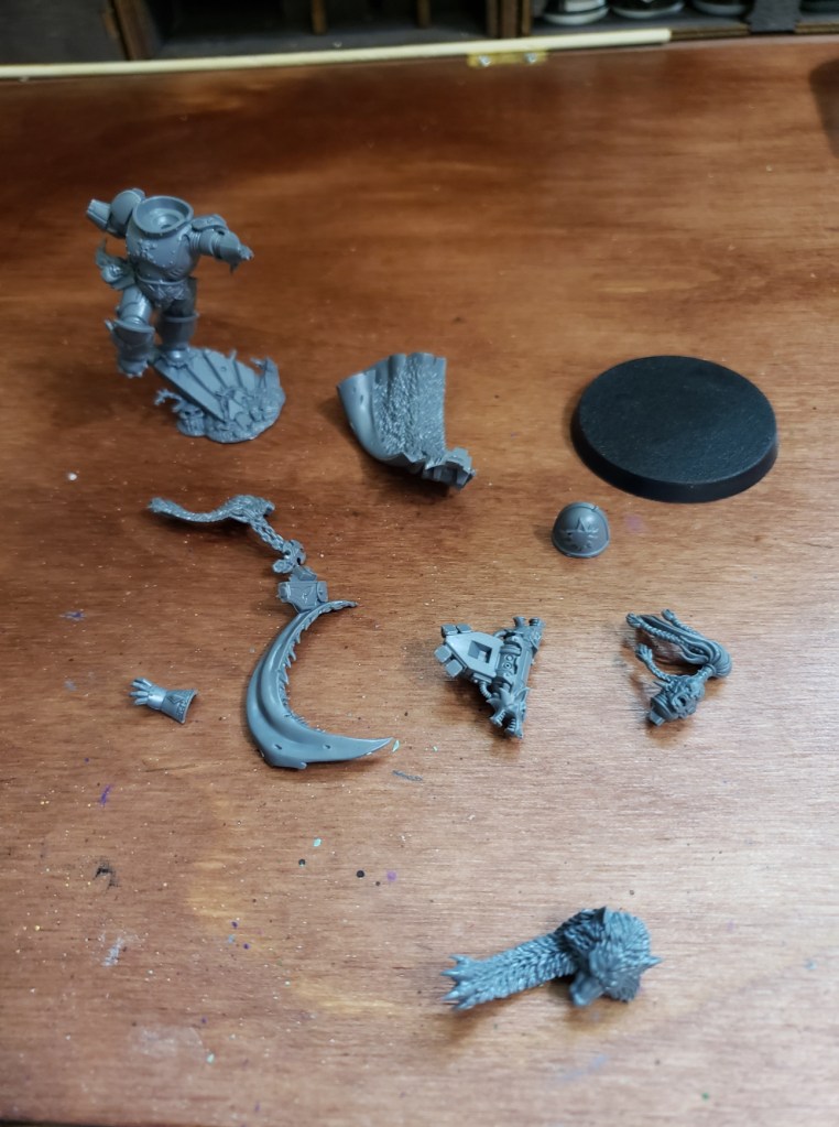 The leader for this army was Ragnok. I just painted him with a different color scheme. This is the completely glued together miniature. I then used a grey primer to paint cover the miniature.