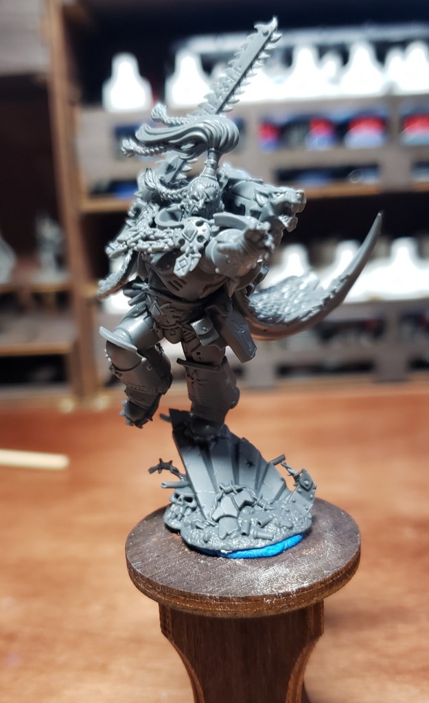 For the base I used Astro Granite for most of the bottom of the base. I painted the protruding metal a bright silver. It makes the metal look like it is buried amongst the rubble of ruins. Very fitting for a fight.