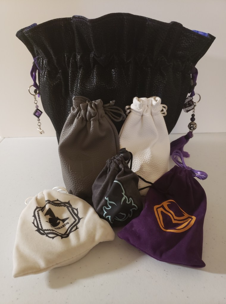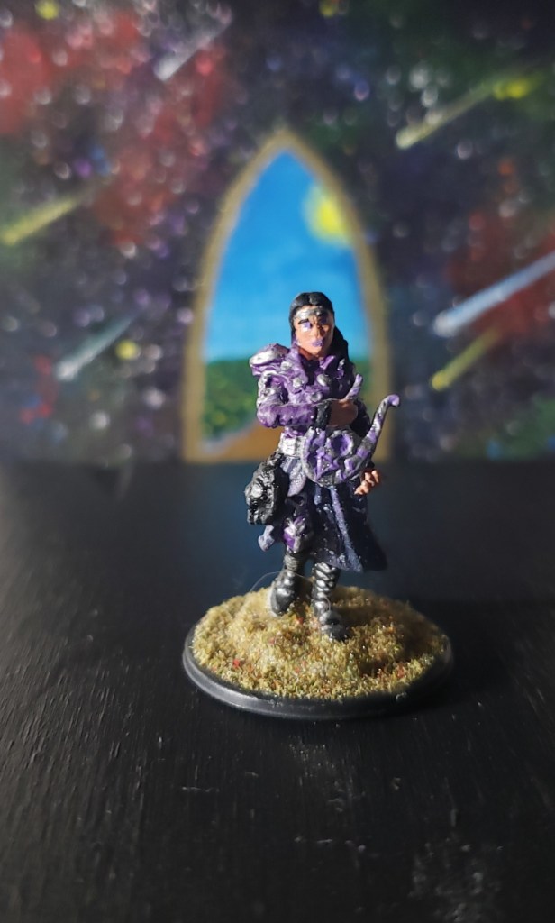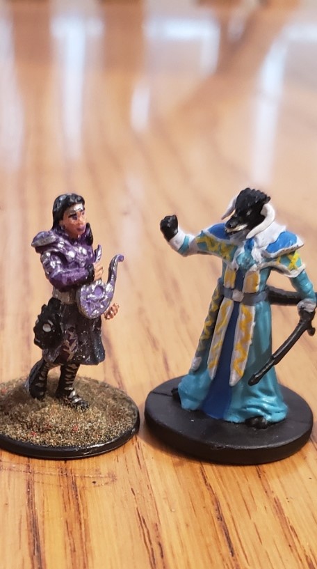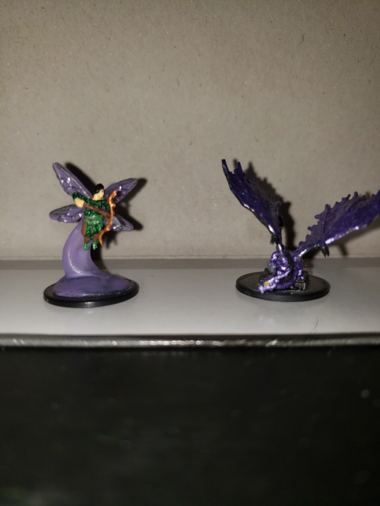 I did a few things for Aleera. I wore purple jewelry and usually wore my hair down with an amethyst circlet during session. As the table artist I painted a few pieces for her, all the miniatures she had, including the little sprite that was hers through Pact of the Chain. I also bought dice that were purple to match her color scheme. I have a super active imagination so it was easy for me to just become Aleera during our sessions but I don’t expect anyone to dress up just to feel like their character.