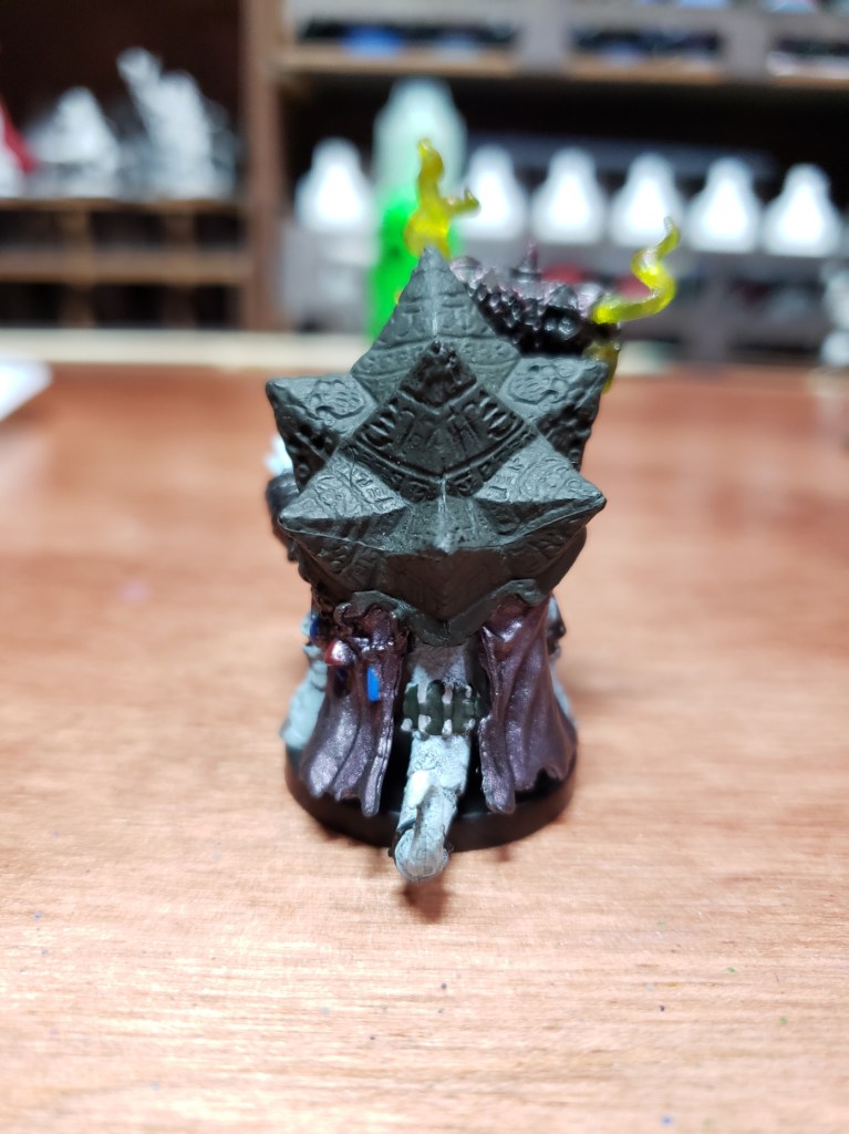 Krull is a well established miniature already. One of my friends had bought a painted one a while back and wanted some extra oomph on it to make it more unique. I offered to bring out the runes on the shell and show the writing.