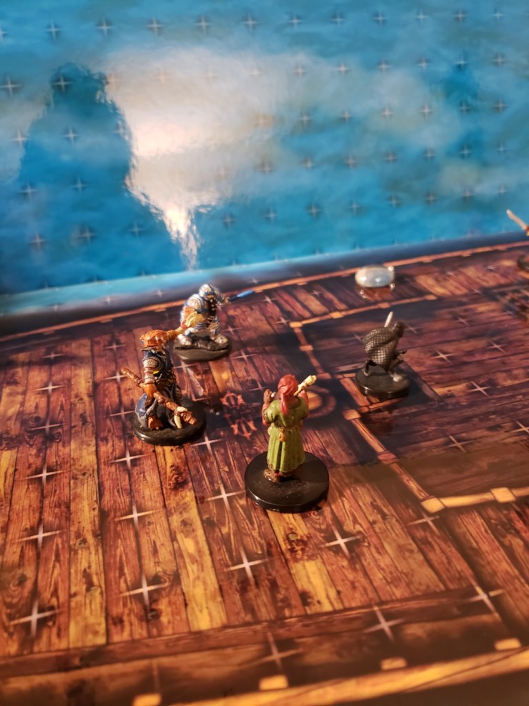 They were told that they would probably have to hire a crew for the ship and outfit it, in the meantime they would have to maneuver the ship themselves. Kaladrax, as their most learned colleague, was asked to Captain the ship. Gralmore took up the role of Quartermaster. Nim, the construct from the House of Inspired Hands, came aboard with them. The temple could no longer keep him hidden from the rest of the city so he came on as the Boson for the ship. He was the maintenance person and Nim seemed happy to be able to tinker all day. Hepolita became the cook. Aleera became First Mate and Kariss the Surgeon.