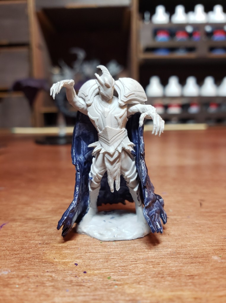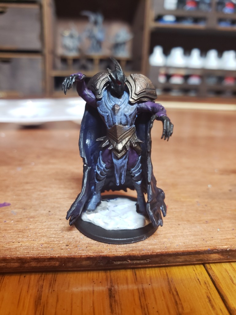 These are the dark Knights that fought on behalf of Null. I wanted a shadowy look to them, as if they could go incorporeal at any moment. So I used a lot of dark colors and shadow wash to create that effect. I started off with a dark blue black, the same color I used on the Null miniature.