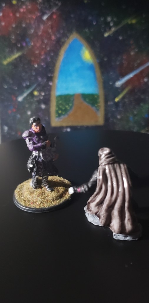 Her mission was complete, the powers were safely ensconced within her and ready for transfer to the Traveler’s custody. As the last bit of power swept into her she dropped into a stupor. It was a combination of the exhaustion of battle over taking her and her god making contact. Again she floated in darkness surrounded by burning stars and crashing cosmos. Doors were spaced evenly in a line in front and behind her. One of them stood open now, a bright world or sunshine and plains stretched out from the doorway. In her head a voice bid her welcome and a hooded figure stepped into her field of vision. With a flick of their hands, they threw back the hood and revealed a visage of the Traveler to her. A handsome but forgettable man, one who could be anyone in any place at any time.