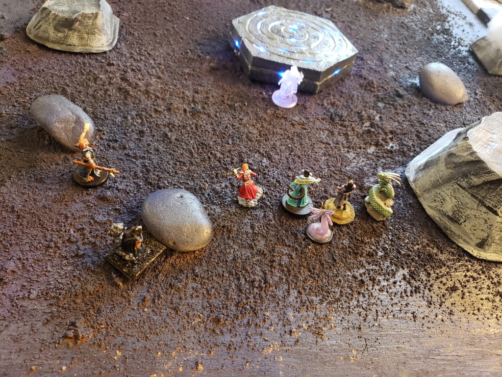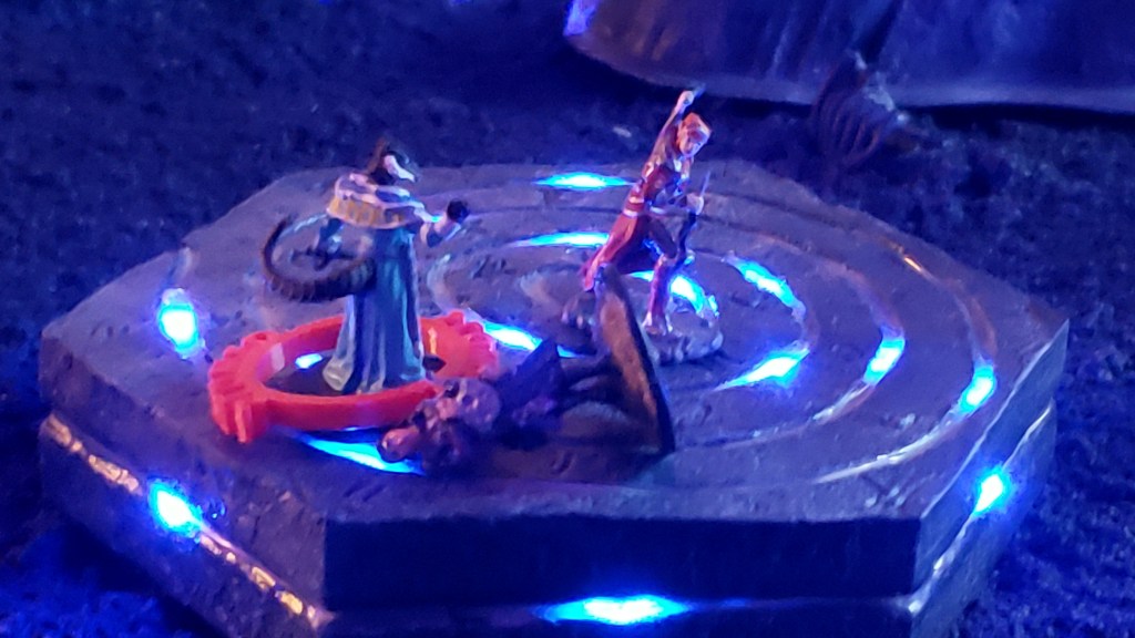 As the fight progressed, they were faced with more and more dangers. An undead red dragon also showed up so Kariss had to change her familiar into its silver dragon form. They fought against the coming perils and were faced with even more when wraiths began swarming in from the murky darkness. Kaladrax was also using a large magical hand to add muscle to their group. It reeled back and punched the red dragon so hard it crashed to the ground as Kariss’s spiritual weapon attacked from another side. As they fought, Milo began to creep up to the white dragon, invisible to the eye. Aleera almost fell as the spell casters provided cover fire for Milo to make his move. At one point they thought they had managed to kill the first figure only to have him rise up a short time later. Realizing they had to kill them within a very close margin, the group reevaluated their tactics.
