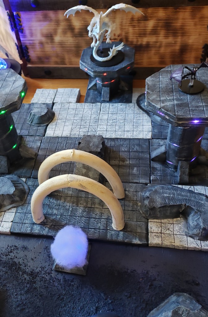 On the other two pillars were two wraith drakes waiting to attack. After a brief pause where both sides measured each other up the drakes dove on the party. They steadily began draining the party members of their vitality. Exhaustion began creeping up. They also had to attack the dragon and avoid its ice breath. They used what cover they could find to stay out of the ice attacks and fought off the wraith drakes. The moaning at the mouth of the temple was getting louder and closer. When Kaladrax saw the first undead shambling to the open he cast a stone shape spell to seal the opening and keep the undead from boxing them in. If they got through, the group would be surrounded on most sides.