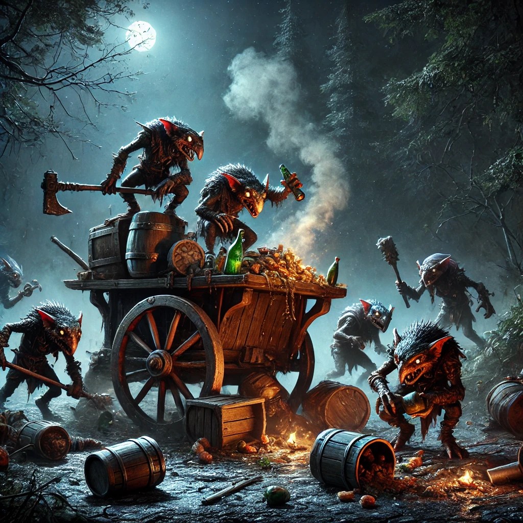 Three small creatures stood on top of one another holding the door open as the one on top began to make its way inside the cart. The one making its way inside was holding a metal disk before him that V had never seen before in all his travels. As they continued breaking in, Captain V began yelling,