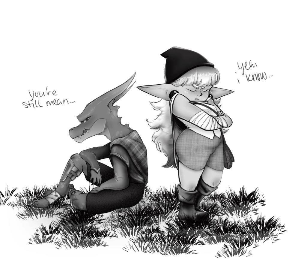 Without him I don’t think I would be here. He is quiet but at his heart he is quite courageous. I can see the many qualities that Lady Kree saw in him. She was attracted to his blue scales.. But there is so much more to him than that. The Captain seemed very pleased by the upgrades i gave him. I was able to make him so much more effective. His first shot on the big creature was AMAZING!. I am already working on future plans and upgrades. The tougher he is the safer we both are. (Gets distracted and starts drawing in her schematics book)