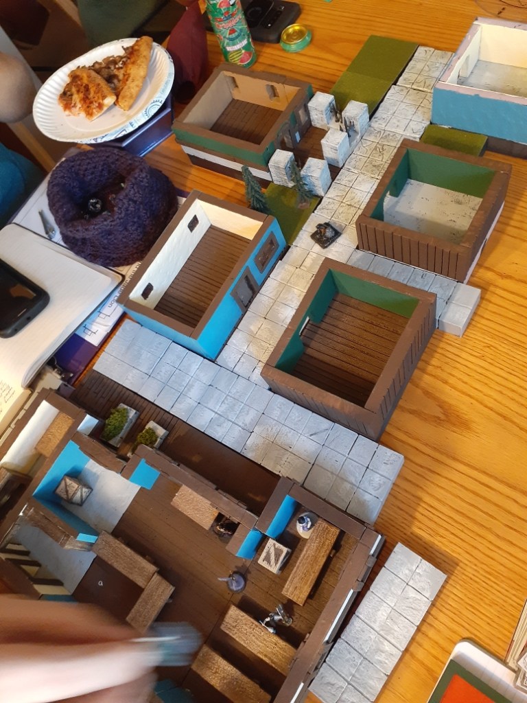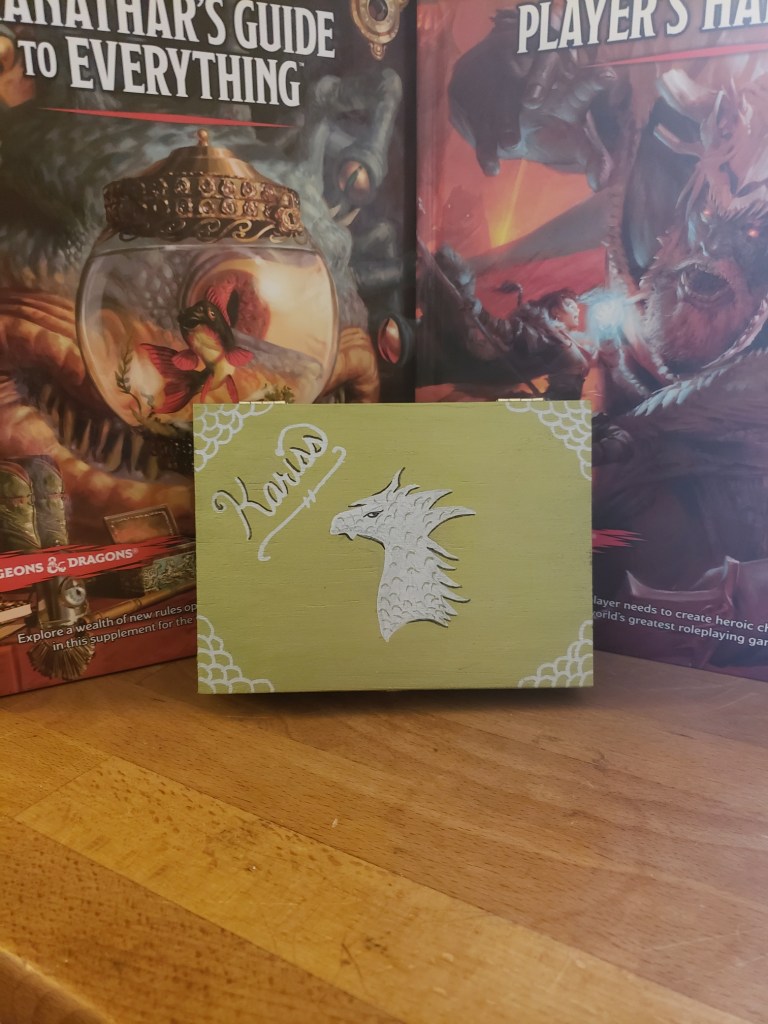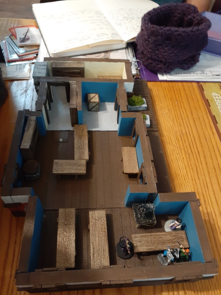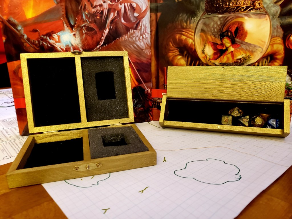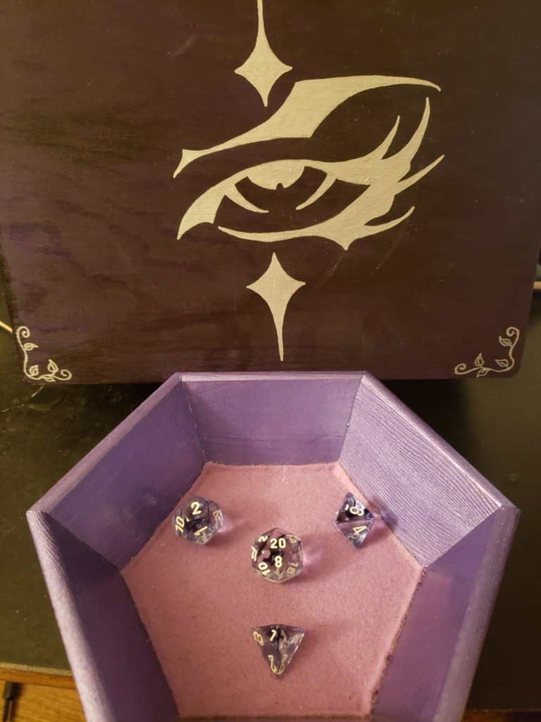 Pictures of our table, crafts, and experiences. My husband has made most of the set pieces and I help with painting and design. I also make all the gifts and craft items for the table like dice boxes, painting minis, dice bags, and art.