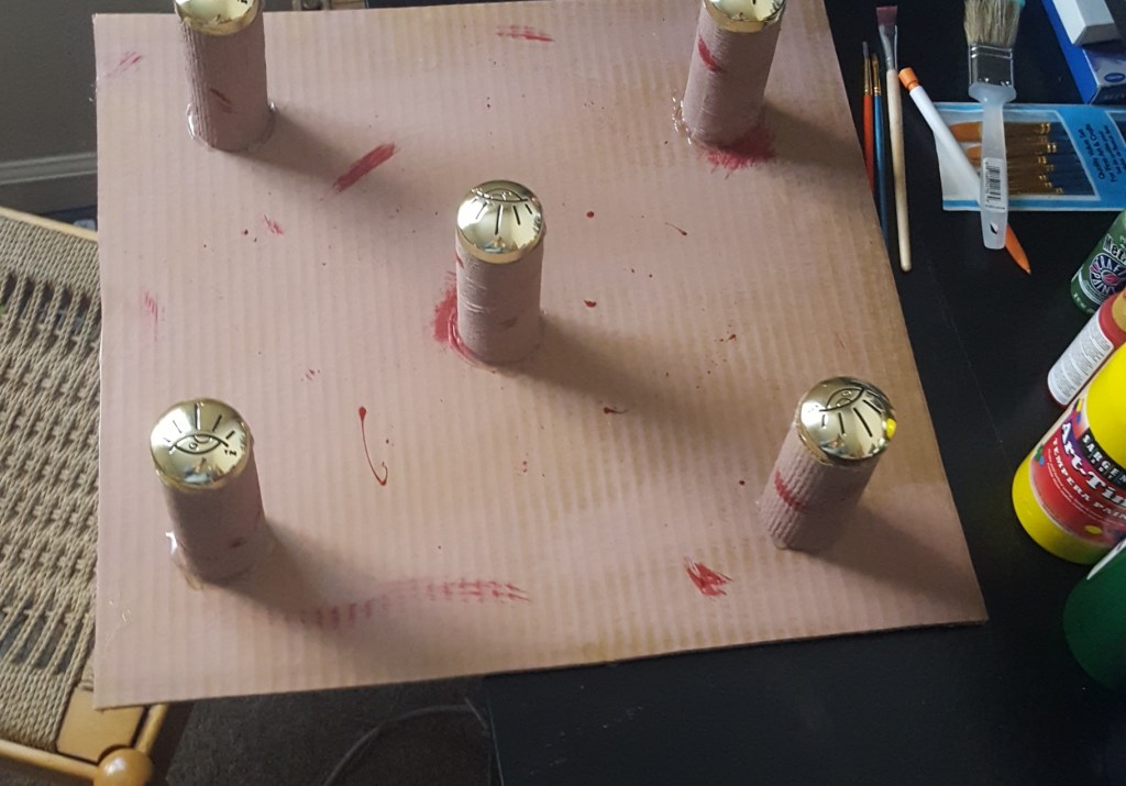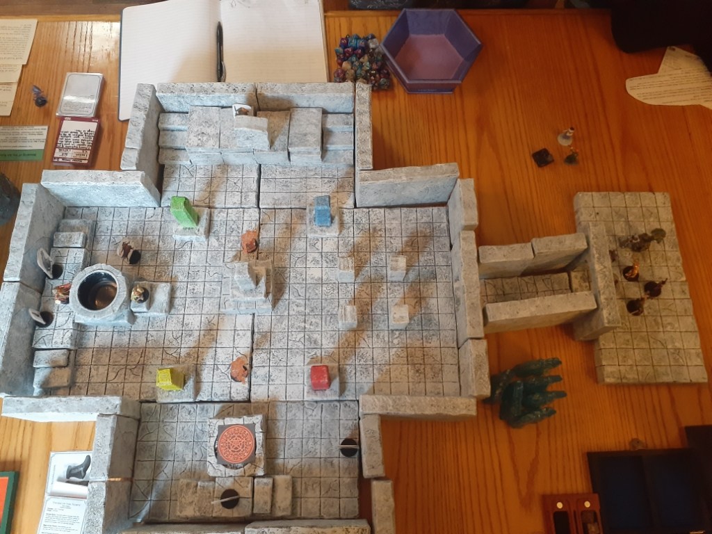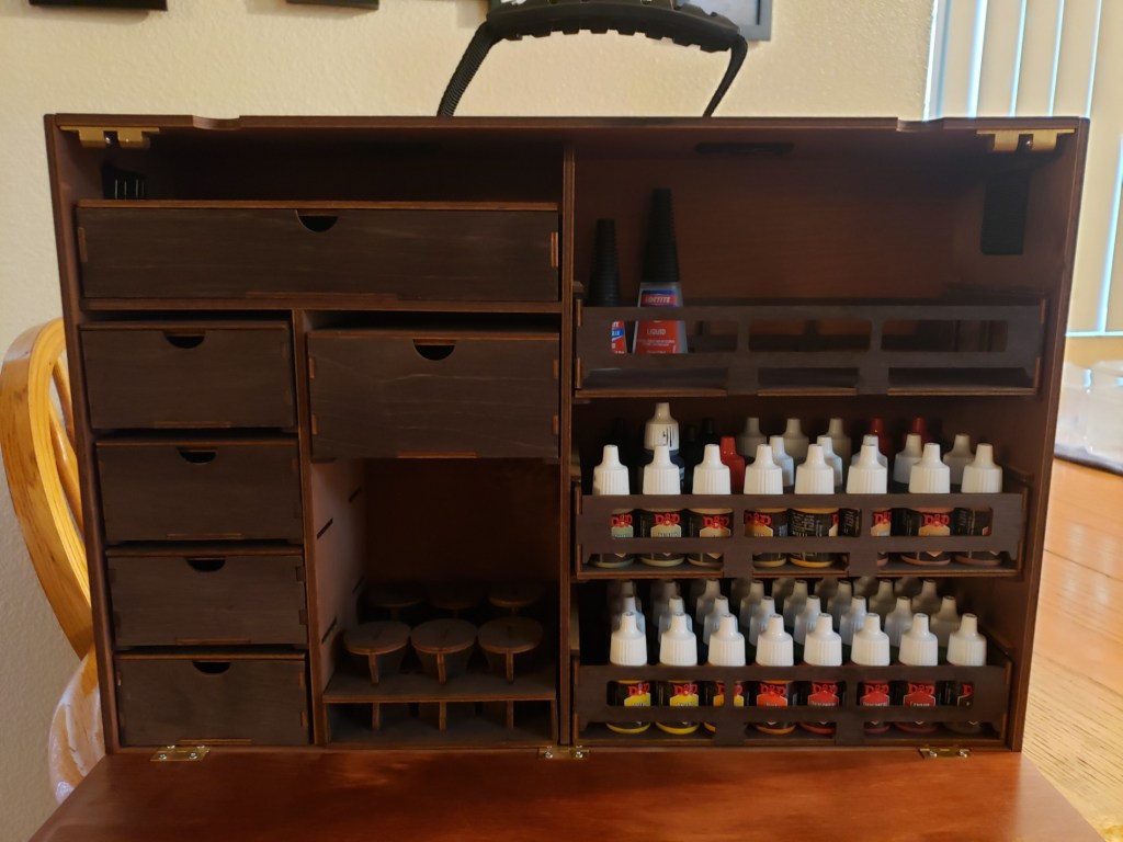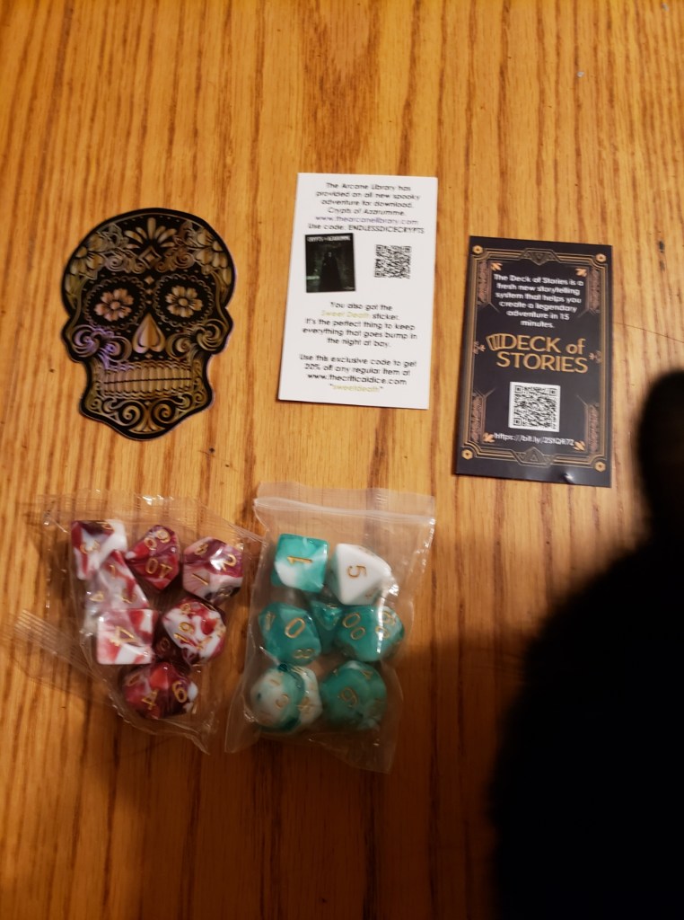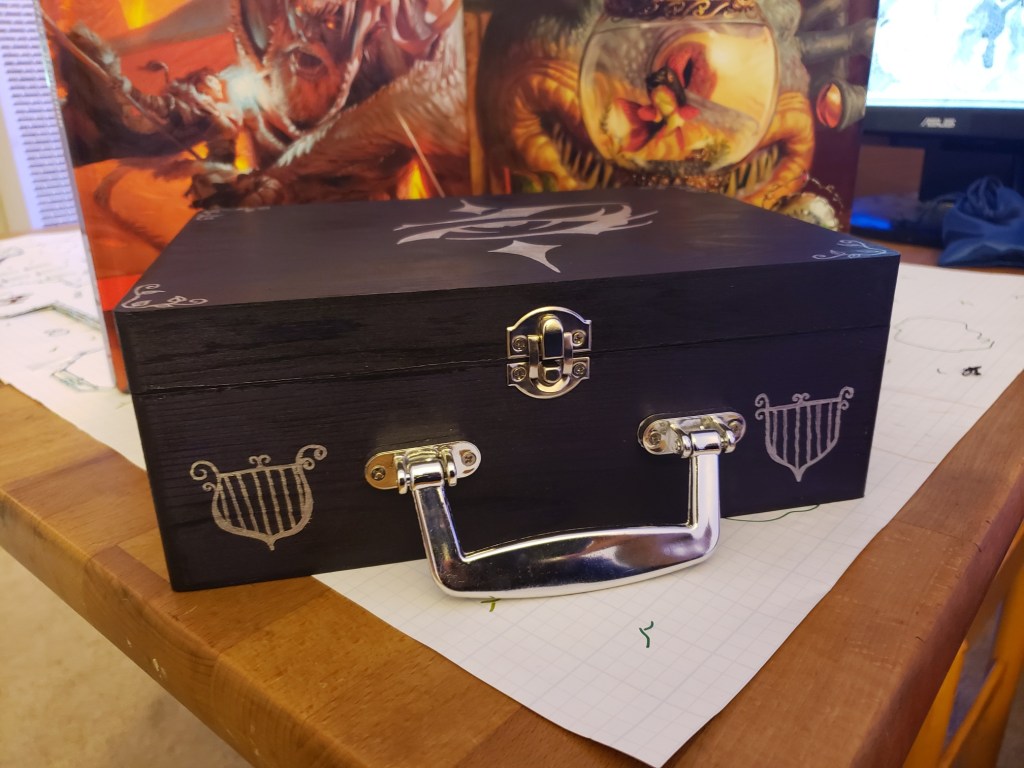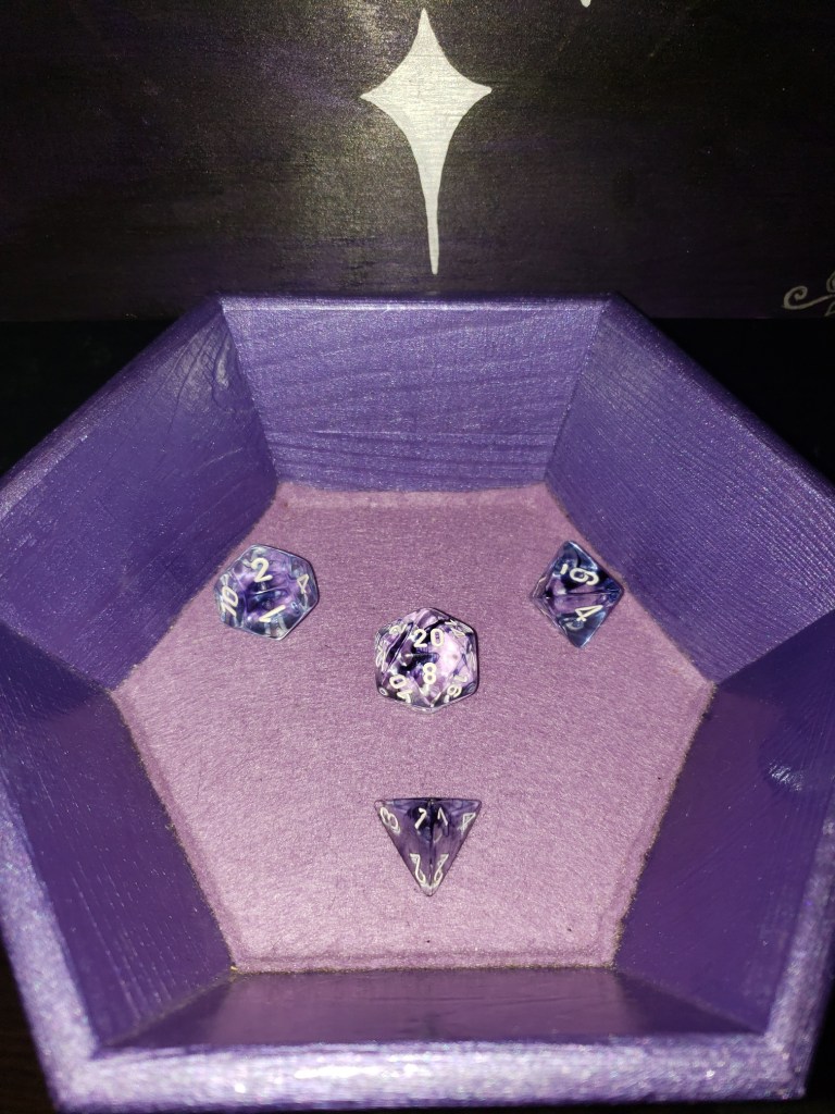 Pictures of our table, crafts, and experiences. My husband has made most of the set pieces and I help with painting and design. I also make all the gifts and craft items for the table like dice boxes, painting minis, dice bags, and art.